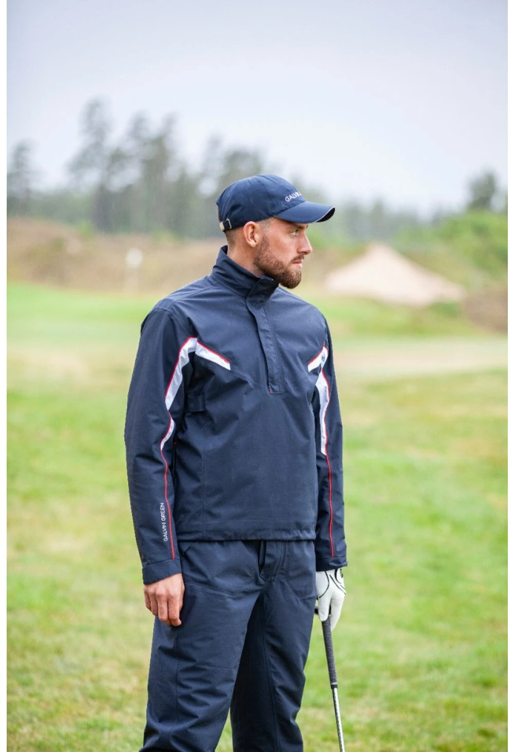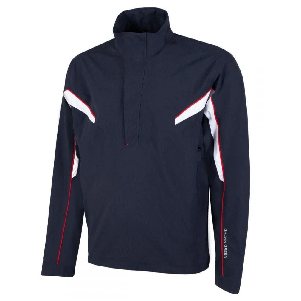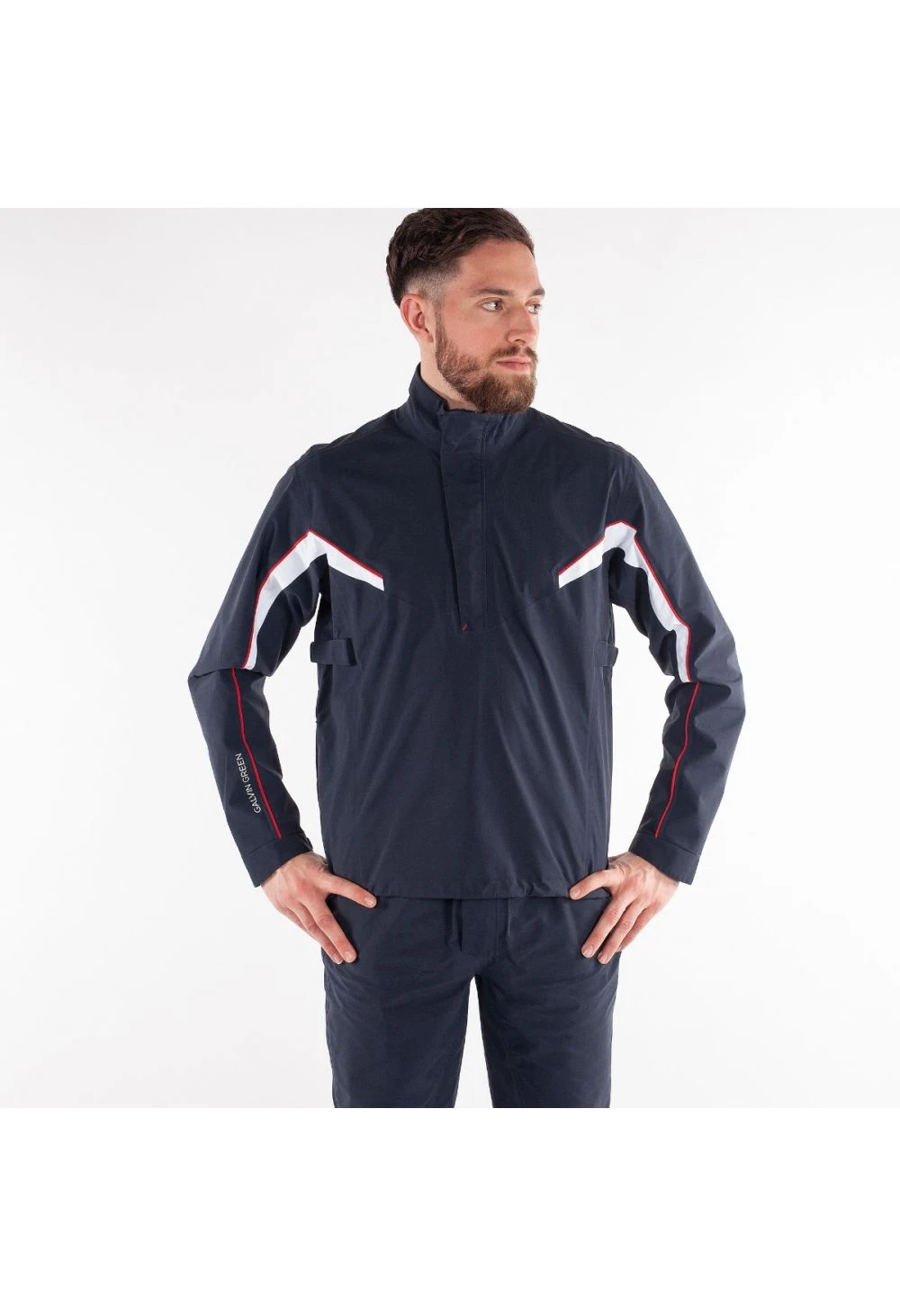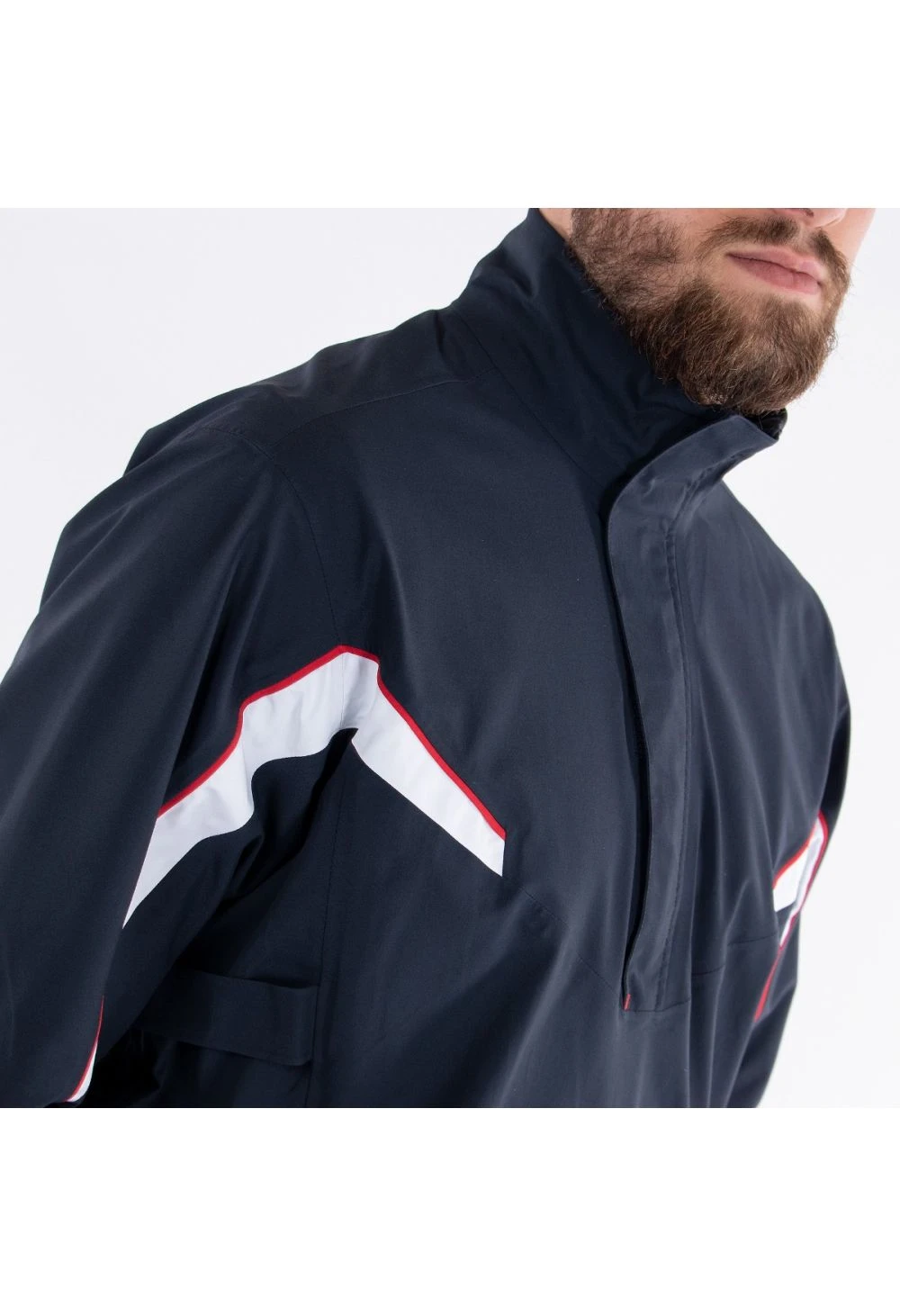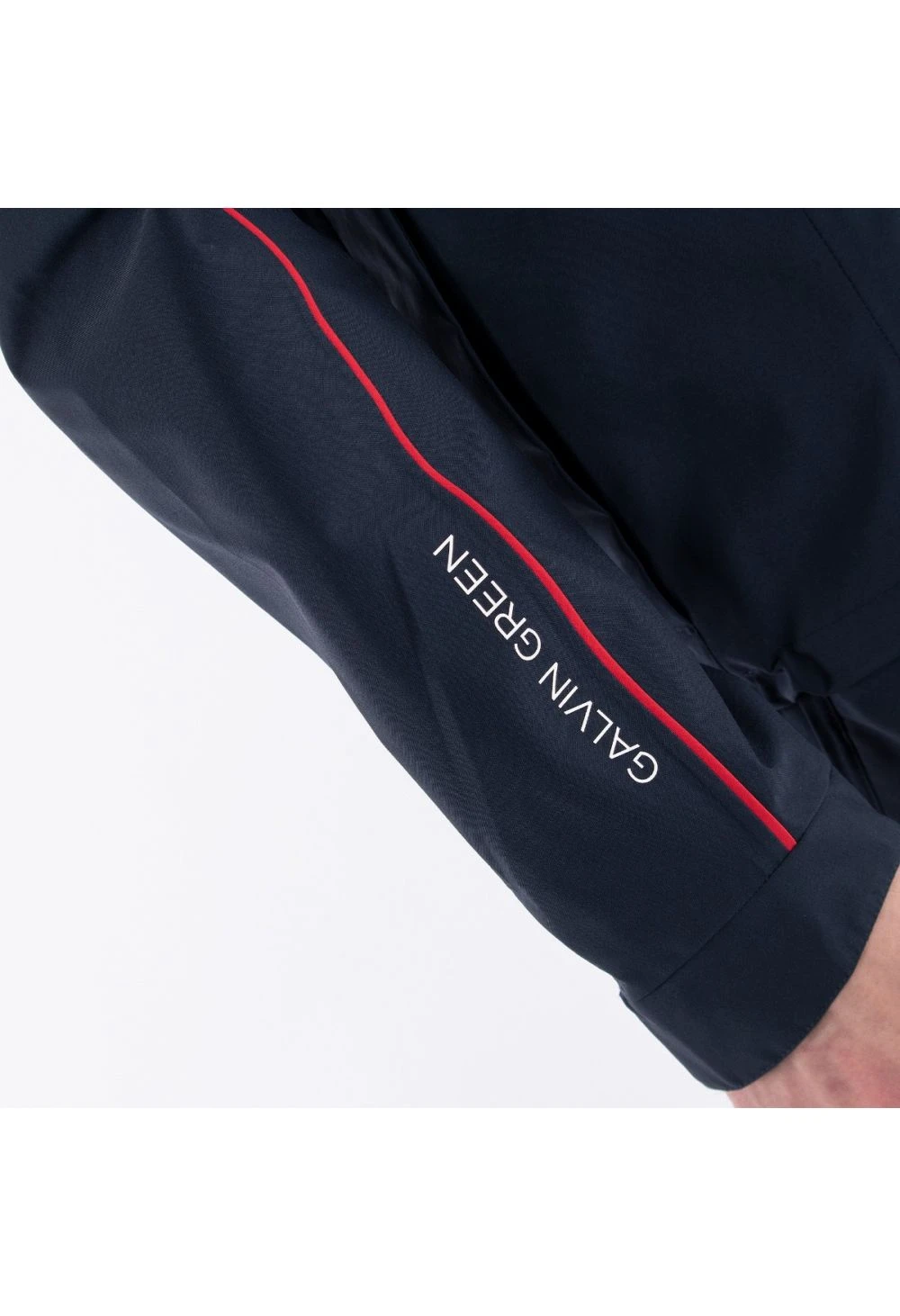 In navy with contrasting white and red detailing, the Galvin Green Abe 1/2-Zip Paclite Waterproof Golf Jacket offers style and comfort that is perfect for golf.